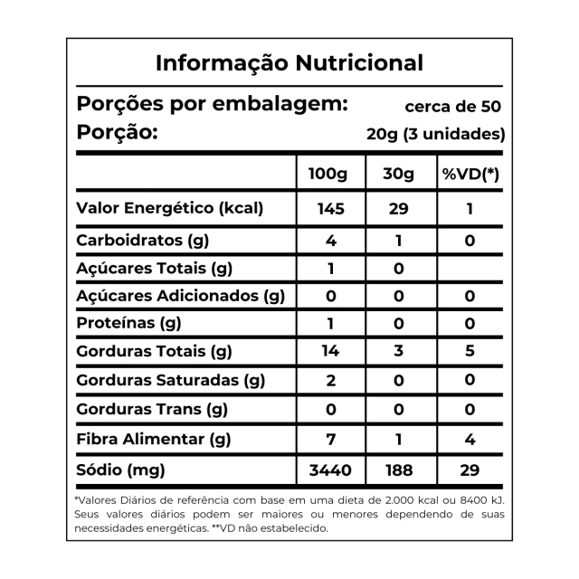 INGREDIENTES: Azeitonas Verdes 60%, Água, Sal, Pimenta inteira, acidulante ácido cítrico, Fatias de Limão, Tomilho Verde.