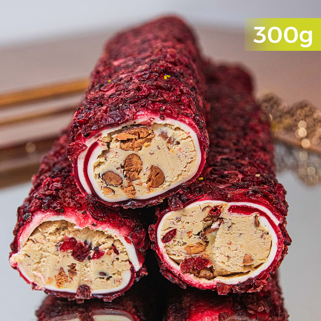 Lokum Tullu – Creme de Amêndoas com Roma é um doce turco importado com exclusividade pela Taybe Food. Produzido com goma turca tradicional, ele é recheado com um delicado creme de amêndoas e coberto com generosos pedaços de romã desidratada. A combinação oferece uma textura macia por dentro e levemente crocante por fora, além de um sabor surpreendente e sofisticado. Ideal para servir como sobremesa ou acompanhar um café.
